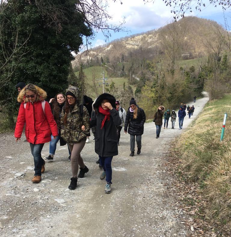 I ragazzi in cammino per raggiungere i ruderi di Casaglia. Foto realizzata da Fabjola Kodra.