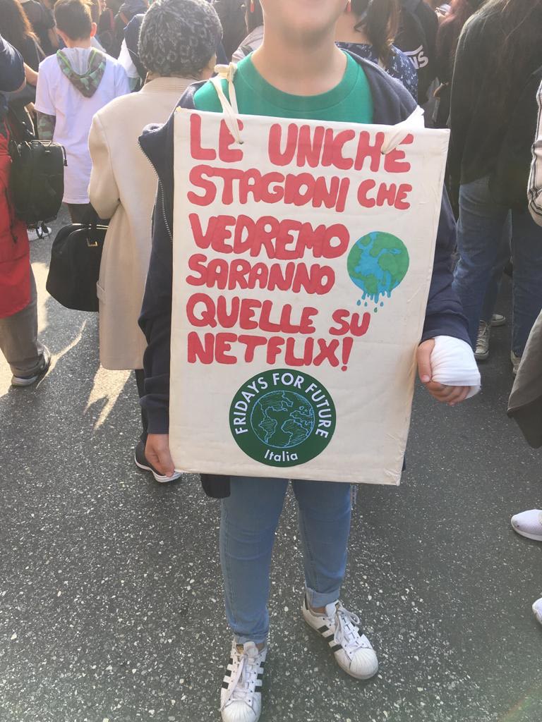 Uno dei tanti cartelloni esposti da studenti durante lo sciopero.